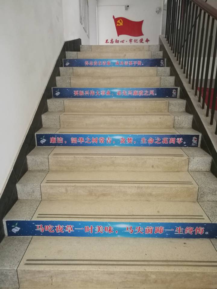 伴隨著活動(dòng)的開始,一卷卷“藍(lán)貼紙”在樓梯處鋪開而下,貼紙上寫著紅色的醒目大字:“廉潔方能聚人,律己方能服人”,“廉潔是我們幸福的根基,自律是我們幸福的源泉”……一句句廉政標(biāo)語揭示了廉政建設(shè)的內(nèi)涵,更反映了發(fā)展對象對廉潔自律的思想認(rèn)識(shí)。通過此次活動(dòng),進(jìn)一步引導(dǎo)師生強(qiáng)化法紀(jì)觀念,崇尚廉潔意識(shí),從思想上筑牢拒腐防變的防線。(圖文/ 許冬晞)
