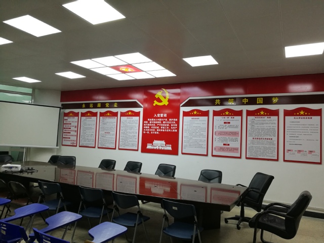 為了進一步貫徹落實黨的十九大精神,加強紅色陣地建設(shè),增強黨員凝聚力和向心力,經(jīng)濟與管理系建設(shè)黨建多功能室。