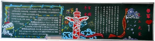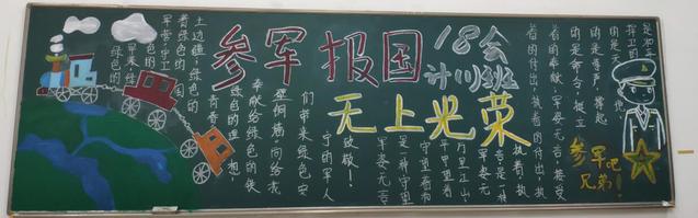 為了激發(fā)在校學生的參軍熱情,營造參軍入伍的氛圍,動員有意參軍的同學積極投身軍營,商學院于4月-5月組織各班開展“參軍報國”主題黑板報活動,商學院在校全體學生廣泛參與。