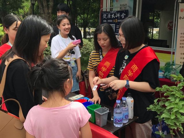 垃圾分類(lèi)進(jìn)社區(qū),綠色環(huán)保入人心,2019年7月10日,經(jīng)濟(jì)與管理系暑期“三下鄉(xiāng)”社會(huì)實(shí)踐隊(duì)前往金山麗景社區(qū)開(kāi)展垃圾分類(lèi)宣傳活動(dòng)。