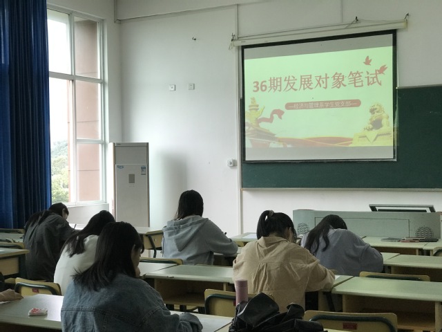 為了加強(qiáng)發(fā)展對象入黨前的教育和考核,提升發(fā)展對象的政治理論水平及政治素質(zhì),經(jīng)濟(jì)管理系學(xué)生黨支部于10月23號(hào)在2號(hào)樓405教室開展黨員發(fā)展對象政治理論考試,13名黨員發(fā)展對象參加了此次考試。