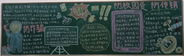 學(xué)院首先通過(guò)QQ群、微信、海報(bào)等方式,開(kāi)展形式多樣的宣傳活動(dòng),營(yíng)造了濃厚的宣傳氛圍。隨后學(xué)院輔導(dǎo)員組織各班召開(kāi)主題班會(huì),觀看防詐騙教育紀(jì)錄片,通過(guò)典型案例剖析和最新“套路”手段講解,向?qū)W生展示不法分子的各類(lèi)詐騙手段以及應(yīng)對(duì)方法,以提升學(xué)生們防范能力。最后在全院范圍內(nèi)開(kāi)展“防傳銷(xiāo)、防校園貸、防詐騙”主題黑板報(bào)評(píng)選活動(dòng),切實(shí)增強(qiáng)同學(xué)們防騙知識(shí),提升放范能力。