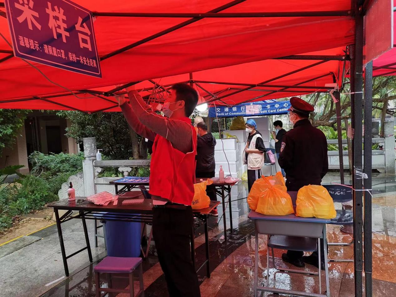 20級(jí)市場(chǎng)營(yíng)銷退役士兵班的王升同學(xué)是福州某公司人力資源管理部門員工,自疫情發(fā)生以來(lái),他主動(dòng)請(qǐng)纓,積極投身到志愿服務(wù)工作,協(xié)助福州市鼓樓區(qū)溫泉街道河?xùn)|社區(qū)采樣點(diǎn),進(jìn)行核酸檢測(cè)秩序維護(hù)、物資管理等相關(guān)工作。