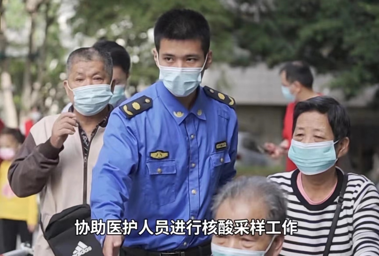 20級(jí)物流管理退役士兵班的林學(xué)奇,是福州市鼓樓區(qū)安泰城管中隊(duì)協(xié)管員,疫情以來(lái)他積極響應(yīng)單位黨組織號(hào)召,一直工作在一線,下沉到各個(gè)核酸采樣點(diǎn),協(xié)助醫(yī)護(hù)人員進(jìn)行核酸檢測(cè)。