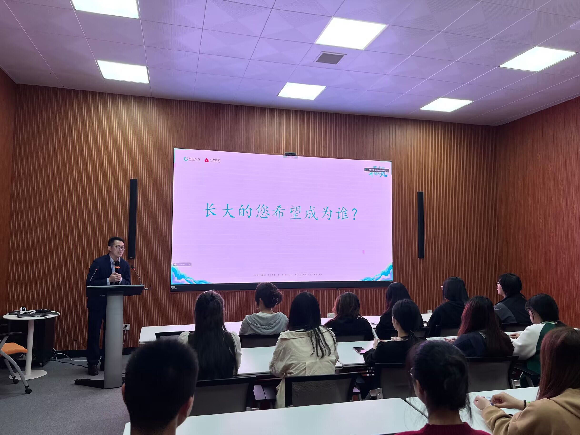我系于4月25日下午在創(chuàng)中心組織了中國人壽保險股份有限公司福州分公司的宣講會,由該公司的HR官丁煌主講。