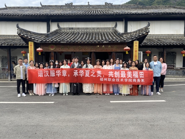 衣承古韻美,帶系華夏魂;裙帶飄飛流轉(zhuǎn)間,千載漢服夢當(dāng)年。2023年5月10日,商務(wù)系聯(lián)合閩侯縣小箬鄉(xiāng)福田村開展了“譜漢服華章,承華夏之美”漢服展示活動,用“走秀+拍攝”的方式讓同學(xué)們更好地感受傳統(tǒng)漢服之美。