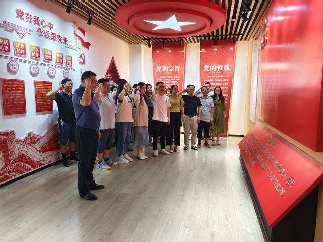 黨員老師們參觀了校政治生活館,再度領(lǐng)略波瀾壯闊的革命史、社會主義建設(shè)史、改革開放史,特別是新時代10年我國各項事業(yè)取得的偉大成就。楊君副書記為6月、7月入黨的同志佩戴黨員徽章,全體黨員一道,為他們過了一個難忘的紅色生日。在郭偉書記領(lǐng)誓下,全體教師黨員重溫入黨誓詞,深刻感受到作為一名黨員、作為人民教師的責(zé)任、使命、擔(dān)當(dāng)。