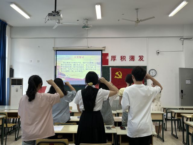 為進一步增強預備黨員組織歸屬感和入黨儀式感,引導他們銘記入黨初心、強化黨員意識、堅定理想信念,商務系學生黨支部于2024年6月25日隆重舉行了新黨員入黨宣誓儀式。