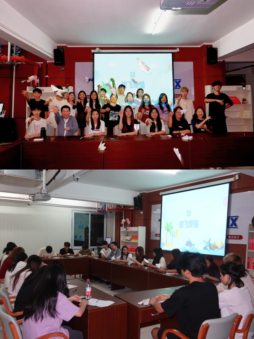 活動中,同學們親手折疊紙飛機,并在上面寫下自己的煩惱與壓力。在主持人一聲清脆而富有力量的號令下,紙飛機宛如承載著同學們卸載重負、輕松邁向未來的堅定信念,優(yōu)雅地在空中勾勒出一條條美麗的弧線。此外,活動還設置了暢想未來環(huán)節(jié),同學們積極表達自己對學習和生活的看法,進一步釋放了內心的情感。