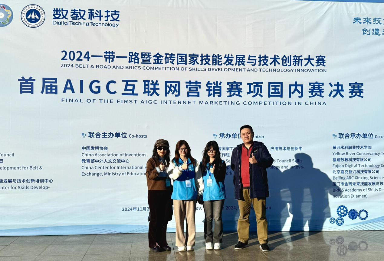 福州職業(yè)技術(shù)學(xué)院商學(xué)院傳來(lái)喜訊,電子商務(wù)1班黃雨欣同學(xué)在AIGC互聯(lián)網(wǎng)營(yíng)銷(xiāo)賽項(xiàng)中榮獲一等獎(jiǎng),跨境電子商務(wù)1班李思妮同學(xué)摘得三等獎(jiǎng)。此次比賽于2024年11月28日至12月1日在河南省黃河水利職業(yè)技術(shù)學(xué)院舉行,指導(dǎo)老師潘蕾和林劍誼帶領(lǐng)兩名學(xué)生參賽。