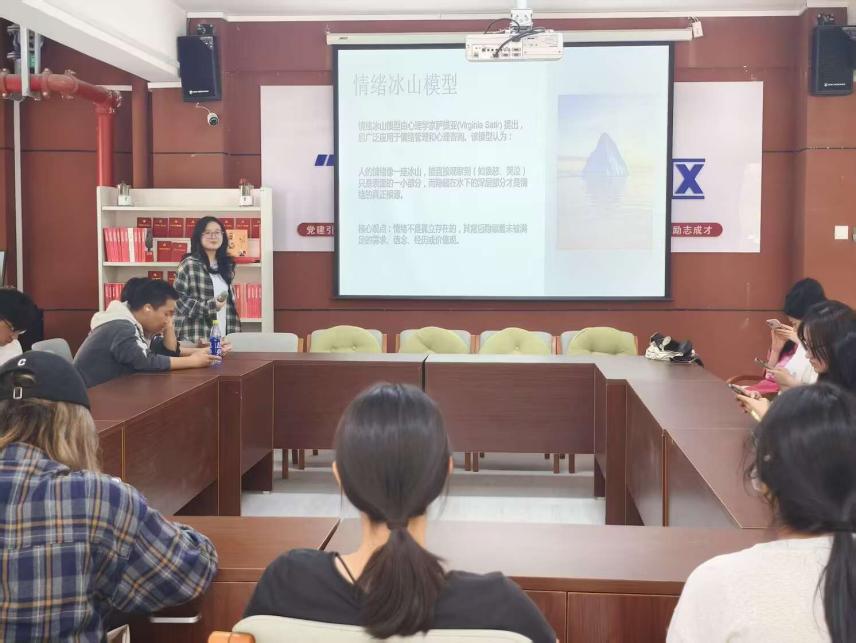 活動分為理論講解、實踐探索與技巧應(yīng)用三大環(huán)節(jié)。朋輩心理健康員以生動案例解析情緒種類與來源,引導(dǎo)參與者建立基礎(chǔ)認(rèn)知;隨后通過“情緒冰山模型”,鼓勵參與者繪制并分享個人情緒圖譜,挖掘行為背后的深層需求與期待。在互動環(huán)節(jié)中,成員們結(jié)合自身經(jīng)歷暢談情緒體驗,增進(jìn)彼此理解。最后,朋輩心理健康員帶領(lǐng)大家練習(xí)深呼吸等實用調(diào)節(jié)技巧,并發(fā)放“情緒應(yīng)對卡片”,幫助同學(xué)們將策略融入日常生活,實現(xiàn)知行合一。