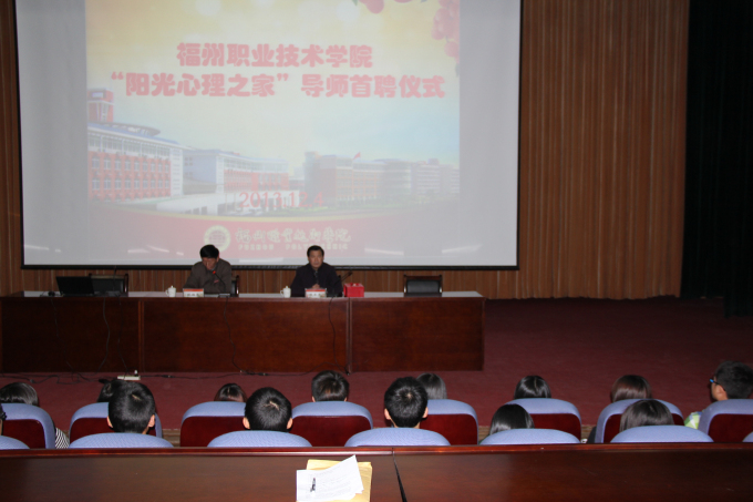 2013年12月4日下午,院“陽光心理之家”導(dǎo)師首聘儀式在500人禮堂內(nèi)隆重舉行。首聘儀式由學(xué)院黨委副書記林福榮主持,學(xué)院黨委書記陳承茂向10位導(dǎo)師發(fā)放聘書并做了重要講話,學(xué)生處、團(tuán)委、保衛(wèi)科負(fù)責(zé)人,各系(院)書記、輔導(dǎo)員、陽光心理之家導(dǎo)師團(tuán)隊(duì)成員、院、系學(xué)生兩委、學(xué)生心理社團(tuán)成員、班級(jí)心理委員近500人參加了首聘儀式。