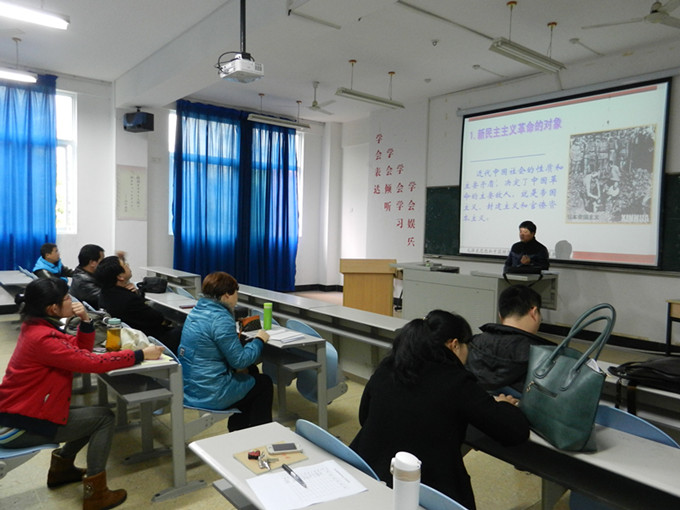 林秉智老師針對其所負責的《新民主主義革命和社會主義改造》教學模塊,就該模塊在《概論》課程體系中的地位、作用,教學目的、教學手段、教學內(nèi)容的設(shè)計,以及在授課過程可能出現(xiàn)的問題、所采用的教學視頻資料、教學方式方法等進行了闡述和分析。其他教師也就各自在備課及教學過程中出現(xiàn)的各種教學現(xiàn)象的思考提出意見和看法。與會教師各抒己見,整個交流活動氣氛熱烈、內(nèi)容豐富。