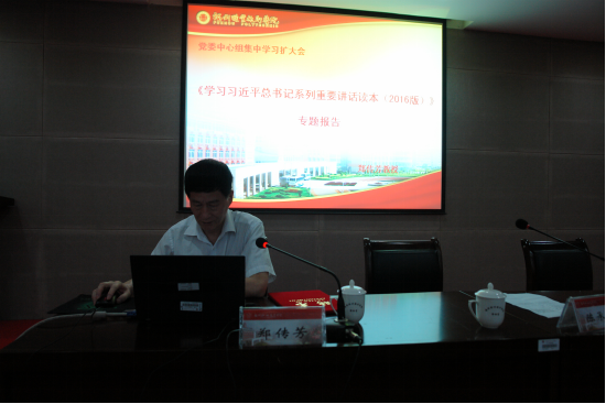 報(bào)告會(huì)上,鄭傳芳教授圍繞學(xué)習(xí)習(xí)近平總書記系列重要講話讀本(2016年版)這一主題,指出習(xí)近平總書記系列重要講話精神的著作載體有25本及重要講話匯集有4本,很多思想是一脈相承的,鄭教授分別從黨建、經(jīng)濟(jì)、文化、生態(tài)、民生、外交等十五個(gè)方面進(jìn)行系統(tǒng)闡述,具有很強(qiáng)的理論性和指導(dǎo)性。整個(gè)報(bào)告內(nèi)涵豐富、重點(diǎn)突出、入腦入心,此次活動(dòng)作為我院“兩學(xué)一做”學(xué)習(xí)教育的一個(gè)重要內(nèi)容,進(jìn)一步提高了我們對(duì)黨、對(duì)中國(guó)特色社會(huì)主義規(guī)律和馬克思主義執(zhí)政黨建設(shè)規(guī)律的認(rèn)識(shí),讓我們更深入、全面地理解到習(xí)近平總書記的治國(guó)理念,為我們?cè)谛碌臍v史起點(diǎn)上實(shí)現(xiàn)新的奮斗目標(biāo)提供了基本遵循。