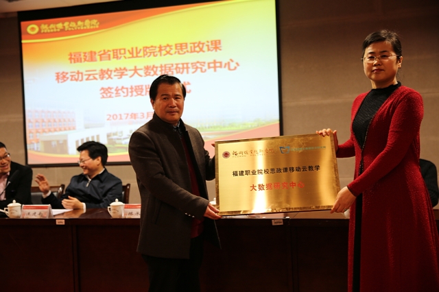 2017年3月31日馬克思主義學(xué)院揭牌儀式暨福建省職業(yè)院校思政課移動(dòng)云大數(shù)據(jù)研究中心簽約授牌儀式在學(xué)術(shù)報(bào)告廳成功舉行,省委教育工委副書記王建南、省教育工委思政處陳曉風(fēng)處長、福州職業(yè)技術(shù)學(xué)院思想政治課特聘教授李方祥、北京藍(lán)墨云教學(xué)大數(shù)據(jù)研究院院長商桑教授、福建省高職院校思政課教學(xué)指導(dǎo)委員會(huì)委員、院領(lǐng)導(dǎo)及各系書記、輔導(dǎo)員、學(xué)生代表和馬克思主義學(xué)院全體教師出席了儀式。大會(huì)由院黨委副書記沈錦華主持并宣讀了馬克思主義學(xué)院成立及領(lǐng)導(dǎo)班子任命文件,省委教育工委副書記王建南和院黨委書記陳承茂共同為福職馬克思主義學(xué)院揭牌;陳承茂書記與商桑教授簽訂福建省職業(yè)院校思政課移動(dòng)云大數(shù)據(jù)研究中心合作協(xié)議并授牌。