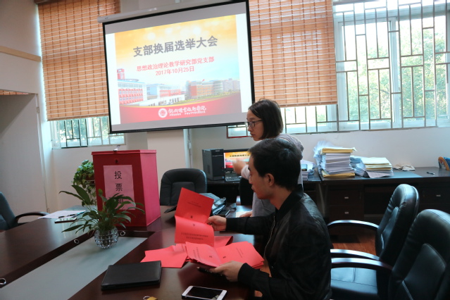 2017年10月25日上午,思想政治理論教學(xué)研究部黨支部根據(jù)校黨委關(guān)于基層黨組織換屆選舉工作的有關(guān)部署,經(jīng)校黨委批準(zhǔn),在學(xué)院會(huì)議室召開(kāi)了中共福州職業(yè)技術(shù)學(xué)院思想政治理論教學(xué)研究部支部委員會(huì)黨員大會(huì)。大會(huì)由劉思鍶老師主持,全體黨員參加了大會(huì)。