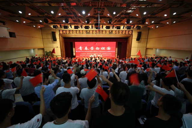 風雨兼程七十載,滄桑巨變七十年。正值新中國成立七十周年之際,學校開展了“不忘初心、牢記使命”主題教育活動。9月25日下午,福州職業(yè)技術學院舉辦“青春告白祖國”師生主題宣講活動,校黨委書記林子波、校黨委副書記沈錦華、黨工部、宣傳部、學工處、團委、馬克思主義學院負責人,二級學院黨總支負責人,全體輔導員、全體思政理論課專兼職教師,校、院兩級習近平新時代中國特色社會主義思想讀書社成員500余人參加活動。校黨委書記林子波為習近平新時代中國特色社會主義思想大學生宣講團成員頒發(fā)聘書。