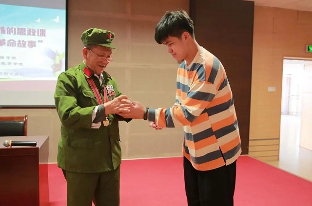 為深化“四史”學習教育,加強愛國主義教育,繼承和弘揚偉大抗美援朝精神,11月13日,我校邀請抗美援朝老戰(zhàn)士周禎榮為師生作專題報告。校黨委書記林子波,校領導沈錦華、劉春蘭,以及相關部門負責人、師生代表與老戰(zhàn)士進行了座談。學校150余名師生代表共同聆聽了報告。