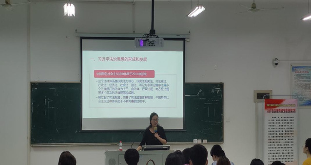 2021年5月12日,福州職業(yè)技術(shù)學(xué)院習(xí)近平新時代中國特色社會主義思想大講壇第五期邀請閩江學(xué)院法學(xué)院副院長阮曉鶯教授做《習(xí)近平法治思想的歷史演進及現(xiàn)實實踐》講座,校習(xí)近平新時代中國特色社會主義思想讀書社與商學(xué)院青馬骨干學(xué)生共計100人參加。