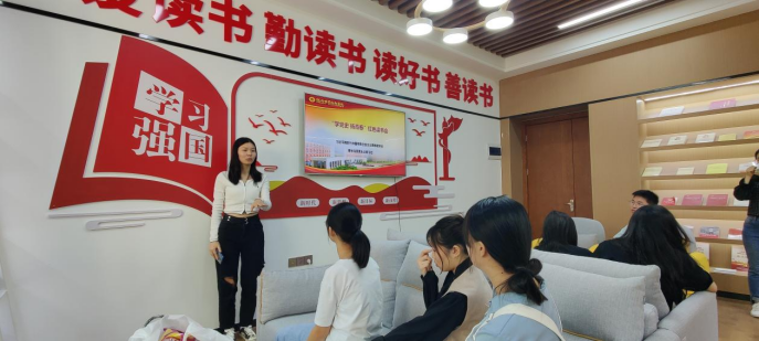 2021年10月17日,福州職業(yè)技術(shù)學(xué)院習(xí)近平新時(shí)代中國特色社會(huì)主義思想讀書社成員們在紅色書屋開展“學(xué)黨史、揚(yáng)青春”紅色讀書會(huì)。
