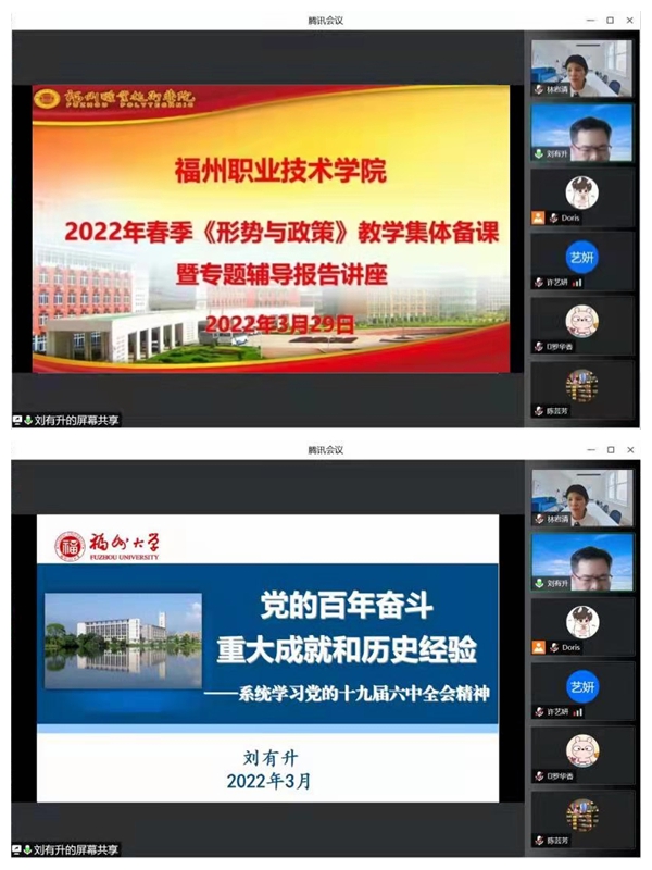 3月29日,馬克思主義學(xué)院《形勢與政策》課程教研室通過騰訊會議開展第二次集體備課。此次集體備課會邀請到了福州大學(xué)劉有升教授做教學(xué)要點解讀暨專題輔導(dǎo)報告,會議由馬克思主義學(xué)院院長林巖清主持,全體《形勢與政策》課程專兼職教師參加會議。
