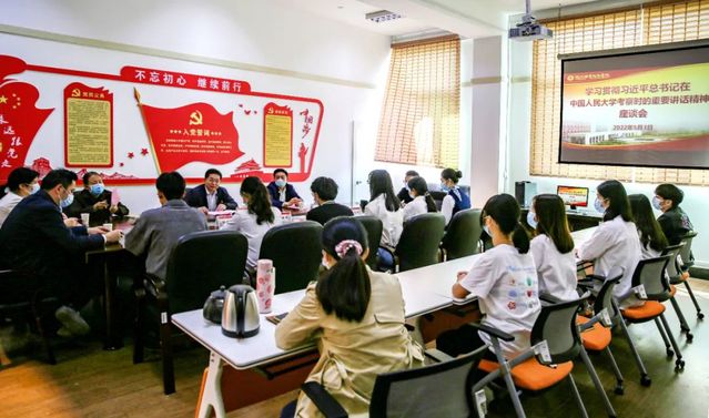 4月25日上午,中共中央總書記、國(guó)家主席、中央軍委主席習(xí)近平前往中國(guó)人民大學(xué)考察調(diào)研并發(fā)表重要講話。在“五四”青年節(jié)即將到來(lái)之際,5月3日下午,校黨委書記林子波主持召開(kāi)師生座談會(huì),深入學(xué)習(xí)貫徹習(xí)近平總書記在中國(guó)人民大學(xué)考察時(shí)重要講話精神。校長(zhǎng)李秋斌、黨委副書記沈錦華,組織部、宣傳統(tǒng)戰(zhàn)部、馬克思主義學(xué)院負(fù)責(zé)人,校習(xí)近平新時(shí)代中國(guó)特色社會(huì)主義思想讀書社師生代表參加座談。