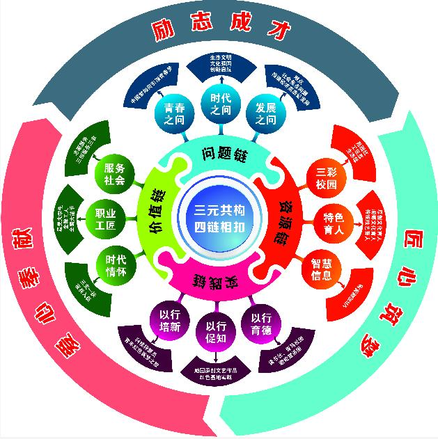 勵園文化融入高職思政課“三元共構、四鏈相扣”教育教學模式圖