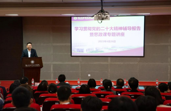 4月26日,我校舉行學(xué)習(xí)貫徹黨的二十大精神輔導(dǎo)報(bào)告暨思政課特聘教授聘任儀式,校黨委書(shū)記林子波出席會(huì)議并講話、校長(zhǎng)陳念東主持會(huì)議,校領(lǐng)導(dǎo)張?zhí)m英、劉春蘭、陳偉,相關(guān)部門(mén)負(fù)責(zé)人、各系黨總支(黨支部)負(fù)責(zé)人、全體思政課專兼職教師及學(xué)生代表兩百余人參加活動(dòng)。