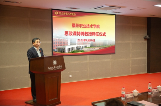 林子波為我校黨委原書(shū)記陳承茂、原校長(zhǎng)孫芳仲兩位特聘教授頒發(fā)聘書(shū)。林子波同志代表學(xué)校對(duì)兩位老領(lǐng)導(dǎo)受聘為思政課特聘教授表示衷心的感謝。他指出,學(xué)校始終堅(jiān)持立德樹(shù)人根本任務(wù),堅(jiān)持和加強(qiáng)黨對(duì)思政課建設(shè)的全面領(lǐng)導(dǎo),著力推進(jìn)以習(xí)近平新時(shí)代中國(guó)特色社會(huì)主義思想為核心的思政課建設(shè)。學(xué)校要以此次聘任為契機(jī),深入學(xué)習(xí)貫徹黨的二十大精神和習(xí)近平總書(shū)記在福建、福州工作時(shí)的創(chuàng)新理念和重大實(shí)踐,深化“三全育人”工作,高質(zhì)量辦好新時(shí)代學(xué)校思想政治理論課。