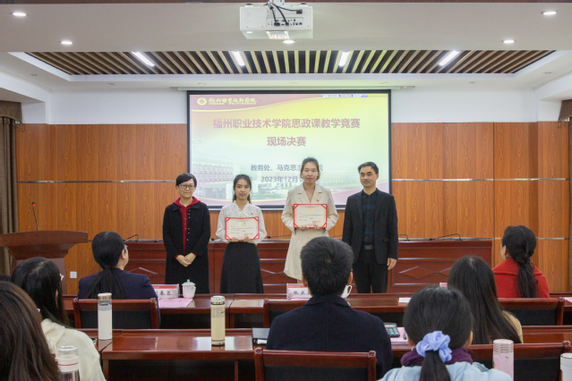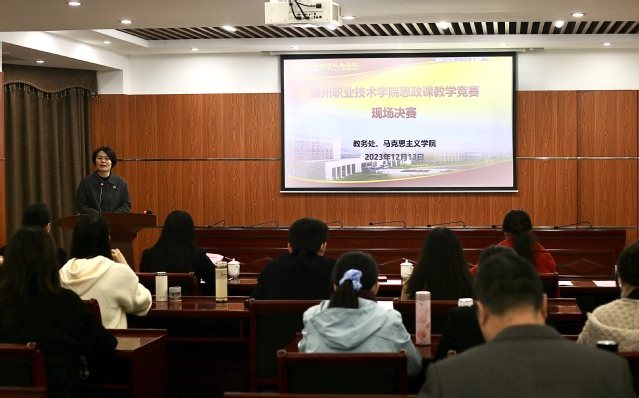 為深入學(xué)習(xí)貫徹習(xí)近平新時(shí)代中國(guó)特色社會(huì)主義思想和黨的二十大精神,提高思政課的針對(duì)性和吸引力,12月13日,由教務(wù)處、馬克思主義學(xué)院聯(lián)合舉辦的2023年學(xué)校思政課教學(xué)競(jìng)賽現(xiàn)場(chǎng)決賽在明德樓417圓滿落幕。本次活動(dòng)邀請(qǐng)了福建醫(yī)科大學(xué)馬克思主義學(xué)院李堃副教授、閩江師范高等專科學(xué)校馬克思主義學(xué)院楊威濤副教授、福州職業(yè)技術(shù)學(xué)院文化創(chuàng)意系鄭曉星副教授擔(dān)任評(píng)委。副校長(zhǎng)張?zhí)m英、劉春蘭出席活動(dòng),教務(wù)處、馬克思主義學(xué)院負(fù)責(zé)人以及全體思政課教師參加活動(dòng)。