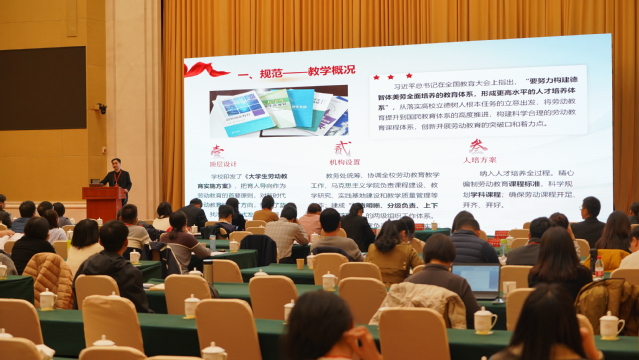 首屆高校勞動(dòng)教育示范案例征集展播活動(dòng)由中國(guó)高等教育學(xué)會(huì)勞動(dòng)教育專業(yè)委員會(huì)、新華網(wǎng)、中國(guó)教育電視臺(tái)和高等教育出版社聯(lián)合舉辦,入選展播優(yōu)秀案例將由新華網(wǎng)和中國(guó)教育電視臺(tái)面向全國(guó)進(jìn)行集中展播。12月9日,展播活動(dòng)交流會(huì)暨第二屆高校勞動(dòng)教育課程教學(xué)研討會(huì)在河北省石家莊召開(kāi),200多位來(lái)自全國(guó)各地的專家學(xué)者及教育教學(xué)工作者匯聚一堂,總結(jié)交流了勞動(dòng)教育的特色做法及實(shí)踐經(jīng)驗(yàn)。我校馬克思主義學(xué)院舒良榮副院長(zhǎng),受邀作為高職院校唯一代表,在大會(huì)上做了《勞動(dòng)融合育人的探索與實(shí)踐》主題發(fā)言,獲得與會(huì)同仁一致肯定和好評(píng)。