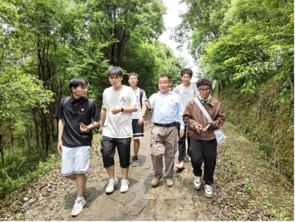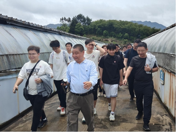 實踐隊師生在陳謨湊董事長的帶領(lǐng)下,參觀了生態(tài)農(nóng)業(yè)大觀園。陳謨湊指著滿目的綠色跟大家介紹:在這里,盛夏,1000畝紫薇花開,漫山遍野的粉紫色花朵隨風(fēng)搖曳;金秋,1600畝桂花氤氳出沁人的芬芳……每個季節(jié)都有不同的生態(tài)美。這里不僅有觀賞性植物,還有他引進(jìn)的雪柑、美國臍橙、臺灣青花梨、意大利血橙等水果,就連良種豬和良種山羊等也成了山里“長住客”。陳謨湊還帶領(lǐng)大家去參觀了獲得實用新型專利的高科技鰻魚養(yǎng)殖場,看著今天這豐饒的生態(tài)資源,很難想象曾經(jīng)這里是一座“荒山”。師生們真真切切地看到了習(xí)近平生態(tài)文明思想的踐行成果,“兩山論”從課本走進(jìn)了現(xiàn)實。