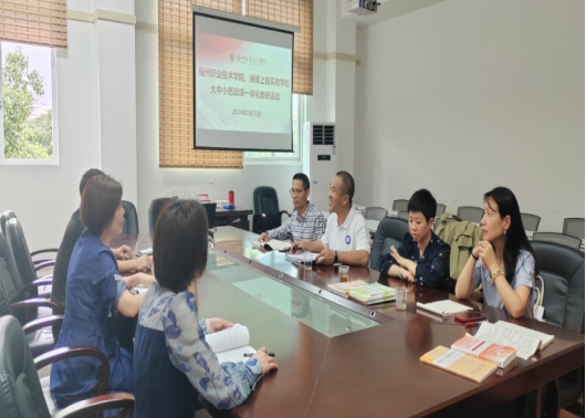 閩侯縣職業(yè)中專學(xué)校、閩侯縣上街實(shí)驗(yàn)學(xué)校、閩侯縣實(shí)驗(yàn)小學(xué)等3所學(xué)校與我校針對(duì)下一步大中小思政課一體化深入開展活動(dòng)情況進(jìn)行交流,對(duì)下一步大中小學(xué)教師互進(jìn)不同學(xué)段的課堂授課計(jì)劃做交流研討。