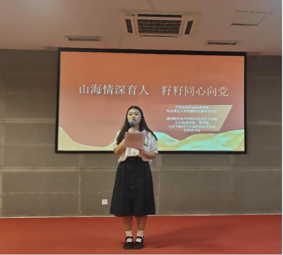 學(xué)習(xí)成果展示活動中,寧夏財經(jīng)職業(yè)技術(shù)學(xué)院展示了小組唱《愛我中華》、經(jīng)典閱讀《恩格斯在馬克思墓前的講話》、微演講《寧夏民族團(tuán)結(jié)之花常開長盛》、學(xué)生“你眼中的2035”主題作品等,以經(jīng)典的力量,傳遞了思想的光芒,謳歌了民族大團(tuán)結(jié)。