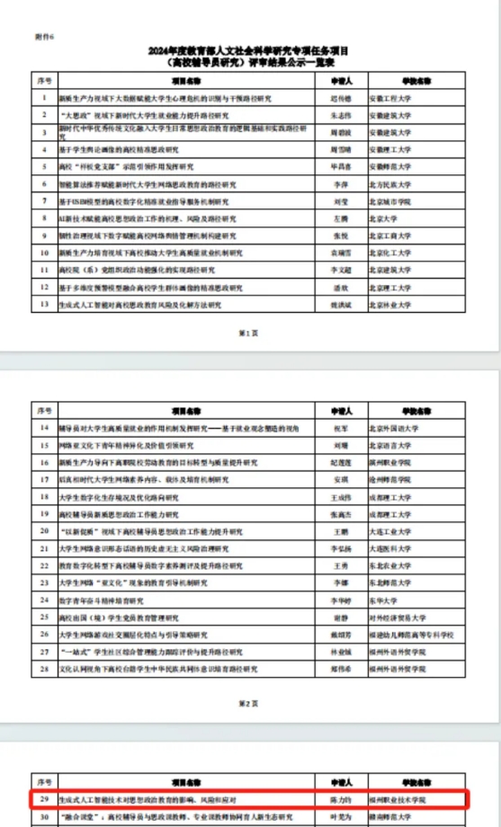 7月31日,教育部社科司公示了2024年度教育部人文社會(huì)科學(xué)研究一般項(xiàng)目評(píng)審結(jié)果。根據(jù)《教育部社科司關(guān)于2024年度教育部人文社會(huì)科學(xué)研究一般項(xiàng)目評(píng)審結(jié)果的公示》,我院陳力鈞老師申請(qǐng)的《生成式人工智能技術(shù)對(duì)思想政治教育的影響、風(fēng)險(xiǎn)和應(yīng)對(duì)》項(xiàng)目,通過(guò)教育部專(zhuān)家評(píng)審,獲批2024年度教育部人文社會(huì)科學(xué)研究一般項(xiàng)目(高校輔導(dǎo)員研究)。