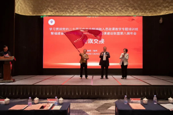 福建林業(yè)職業(yè)技術(shù)學(xué)院黨委副書記嚴(yán)紹裕主持閉幕式,聯(lián)盟秘書長、福建信息職業(yè)技術(shù)學(xué)院黨委副書記王興中作會議總結(jié)。福州職業(yè)技術(shù)學(xué)院、省高職高專院校思政課建設(shè)聯(lián)盟、泉州華光職業(yè)學(xué)院進(jìn)行了會旗交接。第九屆聯(lián)盟承辦單位泉州華光職業(yè)學(xué)院副校長崔蔭發(fā)表了感言。此次聯(lián)盟年會的成功舉辦對于提高福建省高職高專院校思政課建設(shè)具有重要意義,進(jìn)一步提升了聯(lián)盟作為高職高專院校思政課教師協(xié)同創(chuàng)新平臺的價(jià)值和影響力。