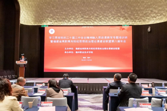 11月28日至30日,由福建省委教育工委指導(dǎo)、福建省高職高專院校思想政治理論課建設(shè)聯(lián)盟主辦、福州職業(yè)技術(shù)學(xué)院承辦的“學(xué)習(xí)貫徹黨的二十屆三中全會精神融入思政課教學(xué)專題培訓(xùn)班”暨福建省高職高專院校思想政治理論課建設(shè)聯(lián)盟第八屆年會在福州順利召開。省內(nèi)外專家和福建省高職高專院校領(lǐng)導(dǎo)、馬克思主義學(xué)院(思政部)負(fù)責(zé)人及思政課骨干教師代表一百多人齊聚一堂,共謀聯(lián)盟建設(shè)發(fā)展與思政課改革創(chuàng)新大計(jì)。本屆會議有開幕式、專家主旨報(bào)告、馬院建設(shè)經(jīng)驗(yàn)交流、教學(xué)展示和實(shí)踐研修等環(huán)節(jié)。