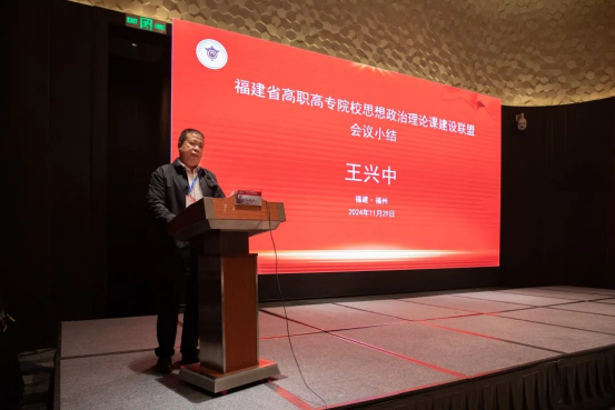 聯(lián)盟秘書長、福建信息職業(yè)技術(shù)學(xué)院黨委副書記王興中作會議總結(jié)
