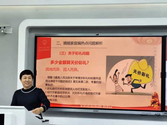 姚春梅副教授首先強(qiáng)調(diào)了憲法作為國家的根本大法,具有最高的法律效力,其他一切法律、行政法規(guī)不得與憲法相抵觸?!吨腥A人民共和國民法典》婚姻家庭編的制定和實施,正是以憲法為依據(jù),體現(xiàn)了憲法精神的具體化和實踐。然后,深入解析了民法典中婚姻家庭編的熱點問題,包括事實婚姻、夫妻一方重大疾病婚前告知義務(wù)、彩禮問題、假離婚的法律效力等,這些都是與公民日常生活密切相關(guān)的法律議題。