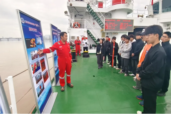 在“科學(xué)號(hào)”上,學(xué)生們參觀了船體結(jié)構(gòu)、實(shí)驗(yàn)室、導(dǎo)航系統(tǒng)等關(guān)鍵部分,直觀感受科考船的運(yùn)作。學(xué)生們登上“科學(xué)”號(hào)360度環(huán)視駕駛臺(tái),零距離領(lǐng)略大國(guó)重器的先進(jìn)設(shè)計(jì)及獨(dú)特魅力。深入船載實(shí)驗(yàn)室,親身感受“大洋移動(dòng)實(shí)驗(yàn)室”的先進(jìn)樣品處理能力。在此次實(shí)踐教學(xué)中,“科學(xué)”號(hào)船長(zhǎng)陳修峰給學(xué)生們介紹了深??蒲性诤Q蟓h(huán)境保護(hù)、氣候變化應(yīng)對(duì)等全球性問(wèn)題中的關(guān)鍵作用,海洋科學(xué)的最新研究成果和未來(lái)發(fā)展趨勢(shì),這不僅拓寬了學(xué)生的知識(shí)視野,也激發(fā)了他們對(duì)海洋科學(xué)的興趣。