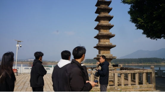 緊接著,校讀書社和實踐隊師生的思緒被鎮(zhèn)國寶塔所吸引。這座巍峨聳立的寶塔,不僅是侯官村的地標性建筑,更是古代工匠智慧的結(jié)晶。在講解員的深情講解下,師生們了解了寶塔的歷史淵源和建筑特色,仿佛能聽到歷史的回音在耳邊回蕩。他們仰望著寶塔,心中激蕩起對古代工匠無盡的敬仰與欽佩。
