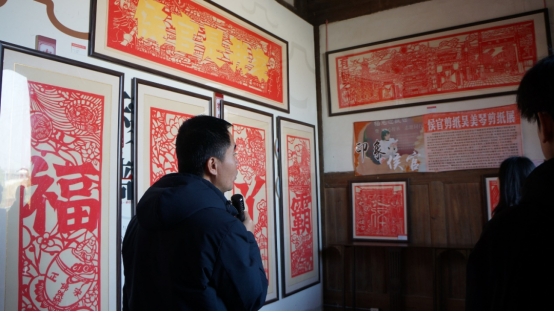 校讀書社和實踐隊師生跟隨講解員的步伐,走進了充滿神秘魅力的侯官剪紙工作室,一起體驗非遺技藝。一踏入這片藝術(shù)的殿堂,他們的目光立刻被滿墻掛滿、桌上陳列的各式剪紙作品牢牢吸引。這些作品宛如一幅幅生動的畫卷,細(xì)膩地描繪著花鳥魚蟲的千姿百態(tài),又或是豪邁地勾勒出山水人物的壯闊景象,更有一些巧妙融合了現(xiàn)代元素,將傳統(tǒng)技藝的精髓與時尚設(shè)計的理念完美融合,讓人不禁為之贊嘆。在這古老藝術(shù)與現(xiàn)代社會的碰撞與交融中,讓大家感受到了非遺剪紙技藝的頑強生命力,也更加堅定了將這份寶貴遺產(chǎn)傳承創(chuàng)新、發(fā)揚光大的決心。