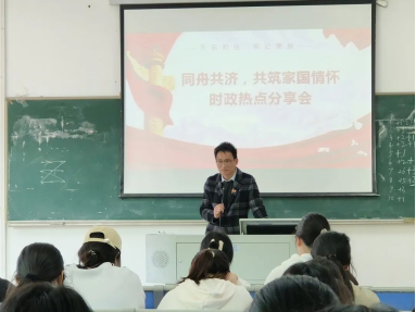 為增強青年學(xué)生對時政熱點的關(guān)注與理解,培育青年學(xué)生家國情懷,我校習(xí)近平新時代中國特色社會主義思想讀書社于3月19日在至善樓312教室開展“同舟共濟 共筑家國情懷”時政熱點主題分享活動。