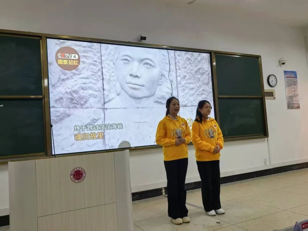 “榮耀的背后,是無數(shù)英雄的默默付出與壯烈犧牲。” 活動(dòng)在校讀書社葉雅婷、蔡若琳兩位同學(xué)講述的紅色故事中拉開序幕。“這趟回家的路,她走了60 年……”,兩位同學(xué)用深情的語言還原了朱楓烈士為革命事業(yè)挺身而出、堅(jiān)守信仰的崢嶸歲月。真摯的情感、動(dòng)人的敘事,讓現(xiàn)場師生仿佛穿越時(shí)空,真切感受到革命先輩對理想信念的執(zhí)著追求和對黨的無限忠誠,不少觀眾眼眶泛紅,敬意油然而生。