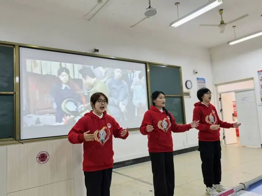 歌聲映初心,經(jīng)典永流傳。信息工程學(xué)院和商學(xué)院讀書社成員張?jiān)ャ?、王孜菡和馬子清帶來的小組唱《珊瑚頌》,以優(yōu)美的旋律、飽滿的情感,歌頌了隱蔽戰(zhàn)線的先烈們?nèi)缟汉靼銏?jiān)貞不屈的品格。激昂澎湃的演唱將革命浪漫主義情懷與堅(jiān)定信念融為一體,既展現(xiàn)了紅色經(jīng)典的時(shí)代魅力,也讓現(xiàn)場氛圍愈發(fā)熱烈,掌聲此起彼伏。
