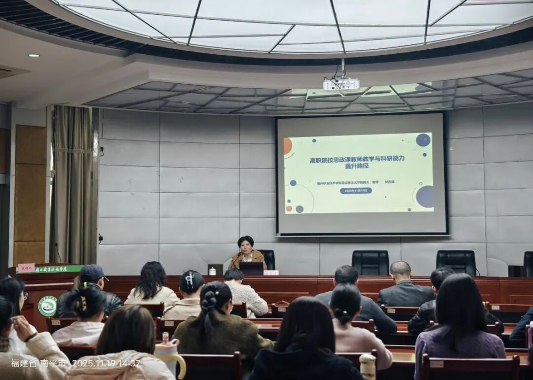 下午,林巖清院長應(yīng)邀開展《高職院校思政課教師科研與教學(xué)能力提升路徑》的專題講座。她從“高職思政課教師教科研能力的重要性、教學(xué)科研能力提升攻略、教學(xué)競賽實戰(zhàn)路徑、教學(xué)成果提煉、思政品牌打造的策略、構(gòu)建可持續(xù)成長生態(tài)的展望”等六個方面進(jìn)行了交流分享。