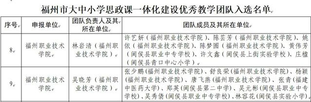 近日,福州市教育局正式印發(fā)《關(guān)于公布全市大中小學(xué)思政課一體化建設(shè)項(xiàng)目入選名單的通知》,我院林巖清老師、吳曉芳老師分別牽頭的兩個(gè)教學(xué)團(tuán)隊(duì)入選福州市大中小學(xué)思政課一體化建設(shè)優(yōu)秀教學(xué)團(tuán)隊(duì),彰顯了我院思政課建設(shè)的成效。