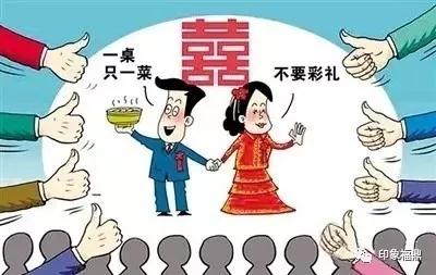 崇尚愛情,自覺做到合理控制人情往來,濫發(fā)請柬,控制宴請桌數(shù)、酒席檔次,杜絕講奢華搞攀比,減少餐桌和車輪浪費,提倡集體婚禮、旅游結(jié)婚、植紀(jì)念樹等文明風(fēng)尚。