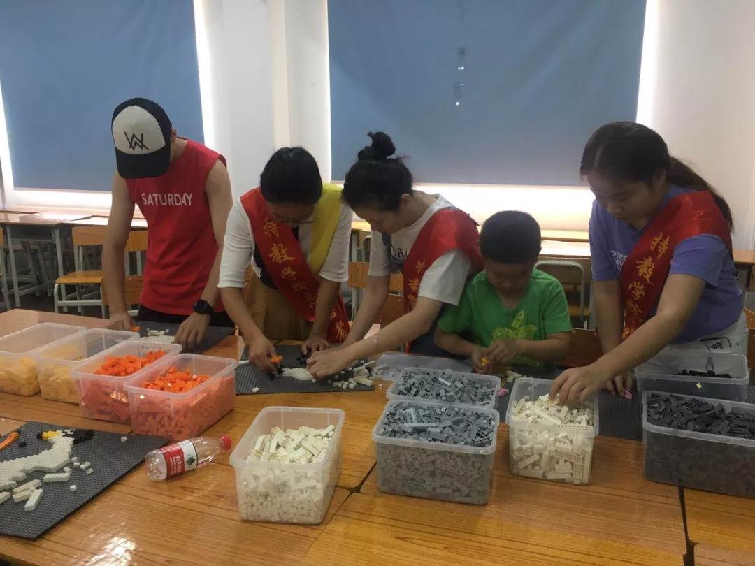 活動伊始,傅剛老師用通俗易懂的語言向孩子們解讀了“神話只鳥”-中華鳳凰燕鷗”的由來及生活習(xí)性,聽障生手把手教孩子們用一塊塊樂高積木拼出自己心中的“中華鳳凰燕鷗”。最后在肖水清老師的指導(dǎo)下,孩子們學(xué)會了“你好”、“謝謝”等手語,并對姐姐們的幫助豎起大拇指表示真誠的感謝。