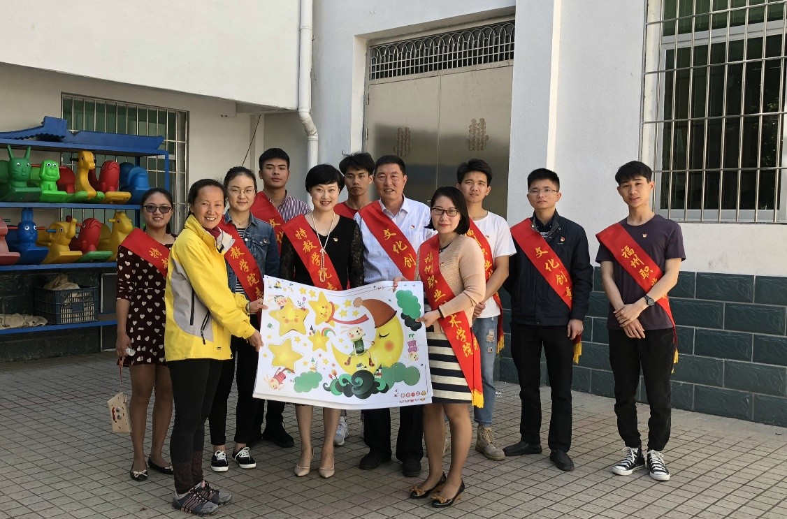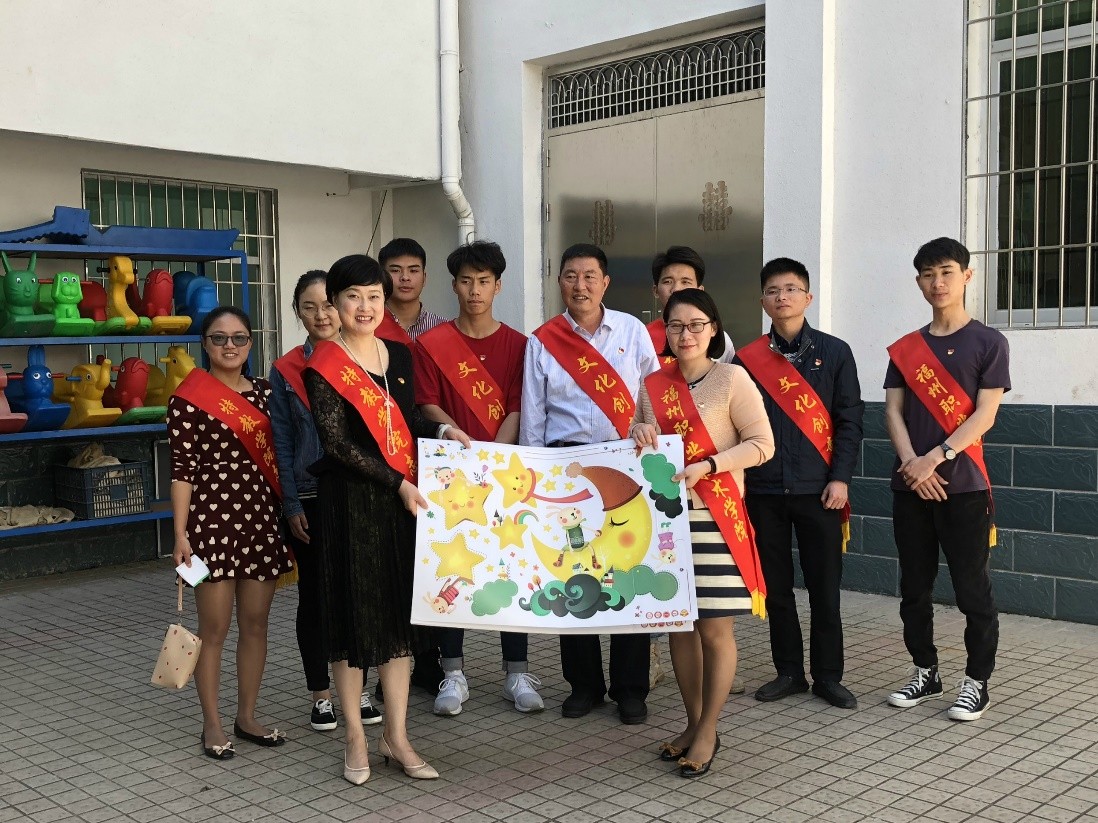 繼1月22日志愿活動(dòng)后,兩系黨員每人捐贈(zèng)10元,網(wǎng)購精美的卡通墻紙贈(zèng)送給善恩園。4月19日上午,兩系黨員帶著墻紙前往閩侯縣善恩園進(jìn)行布置。